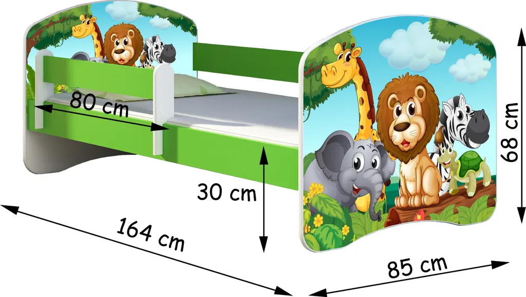 KOMPLETTSET – Das Kinderbett ist bis 120 Kilogramm geeignet. Unser Set beinhaltet alle notwendigen Teile, wie eine Schaumstoffmatratze mit Überzug und Reißverschluss, Lattenrost aus speziell mehrschichtigen zusammengeklebten Leisten und OPTIONAL- Bettkasten. Maße des Bettes: 164 cm x 85 cm x 67 cm;