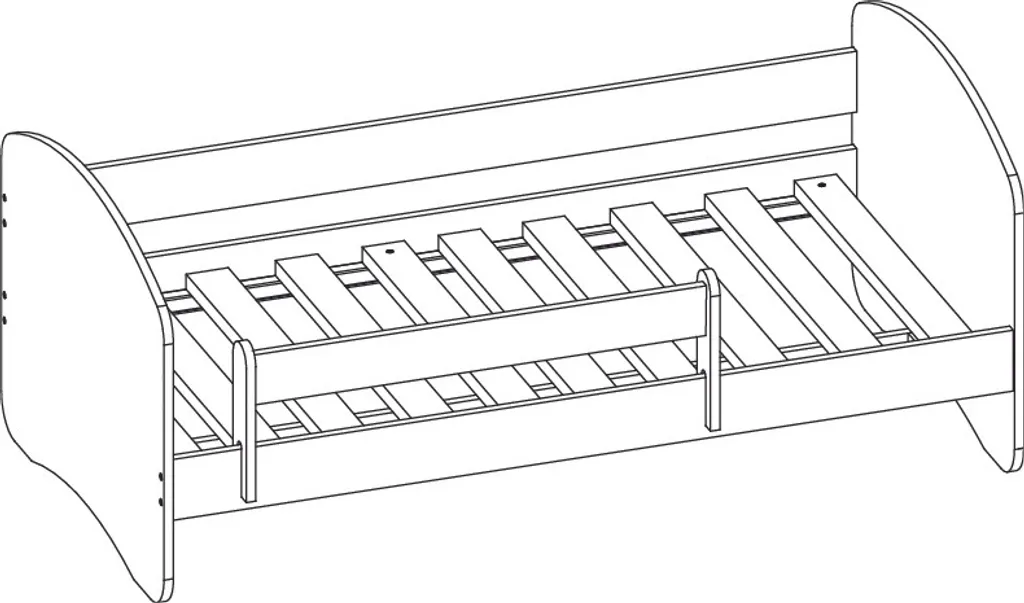 • Speziell geformte Bettseiten, die das Kind vor dem Herunterfallen auf den Boden schützten.