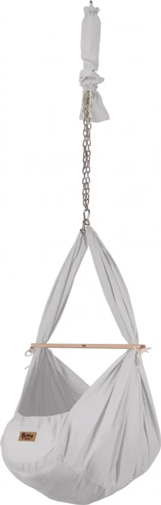 Lieferumfang: Wiegensack, Matratze, Tragetasche, Spezialfeder mit Sicherheitsseil, Spreizstab, Verlängerungskette (ca. 100 cm), Dübel, Ösenschraube, 2 Karabinerhaken, Montageanleitung mit Sicherheitshinweisen uvm.