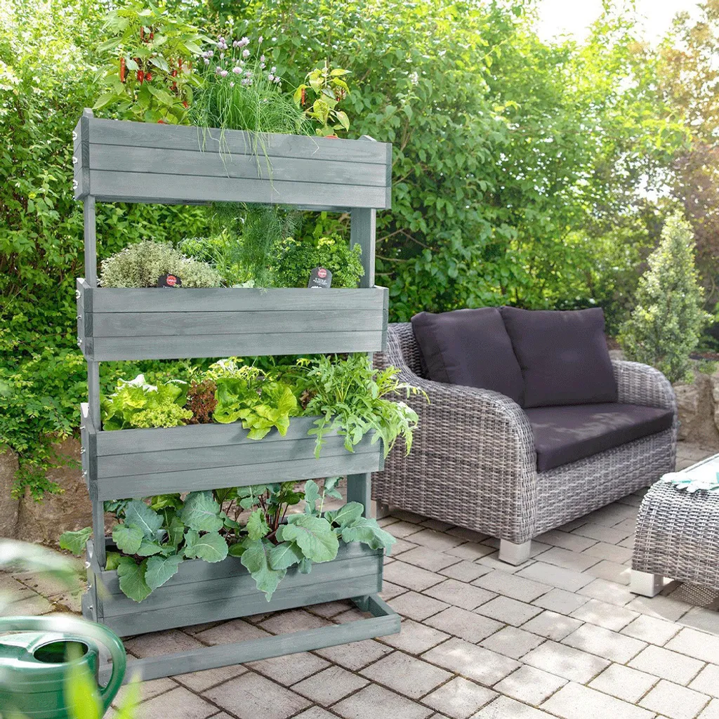 Das vertikale Hochbeet Cube 4 punktet mit vier beweglichen Kästen und ermöglicht dadurch rückenschonendes Gärtnern auf Ihrem Balkon oder der Terrasse. Dank einfacher Montage ist das Hochbeet in Windeseile einsatzbereit und eignet sich ideal zum Anbau von Salat, Kräutern oder Gemüse.