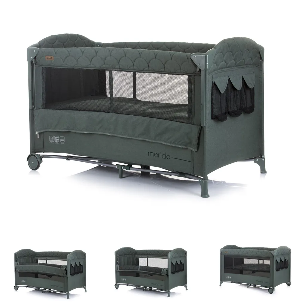 Das Reisebett Merida von Chipolino überzeugt nicht nur mit seinem schönen Leinen Design. Durch eine schnelle und unkomplizierte Montage lässt sich dieses Reisebettchen im Handumdrehen auf- und abbauen. Das Reisebett wird in einer praktischen Tragetasche geliefert und beinhaltet bereits eine passende Matratze. Auf 2 Ebenen kann diese Faltmatratze eingestellt werden. Das Reisebett hat an den Längsseiten Sichtfenster für die optimale Sicht auf Ihr Kind. Zusätzlichen bieten drei weitere Taschen an der Seite Platz für Zubehör. Mit den zwei Rollen lässt sich das Bettchen problemlos verschieben. Ideal für Zuhause oder Reisen.