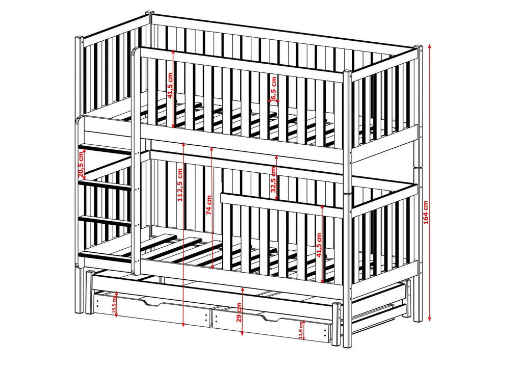 - LIEFERUMFANG: Etagenbett aus Kiefernholz, Lattenrost Flex aus Birkensperrholz, 2 Schubladen aus Spannplatten mit Rollen, Rausfallschutz, ohne Matratzen und Dekoration
