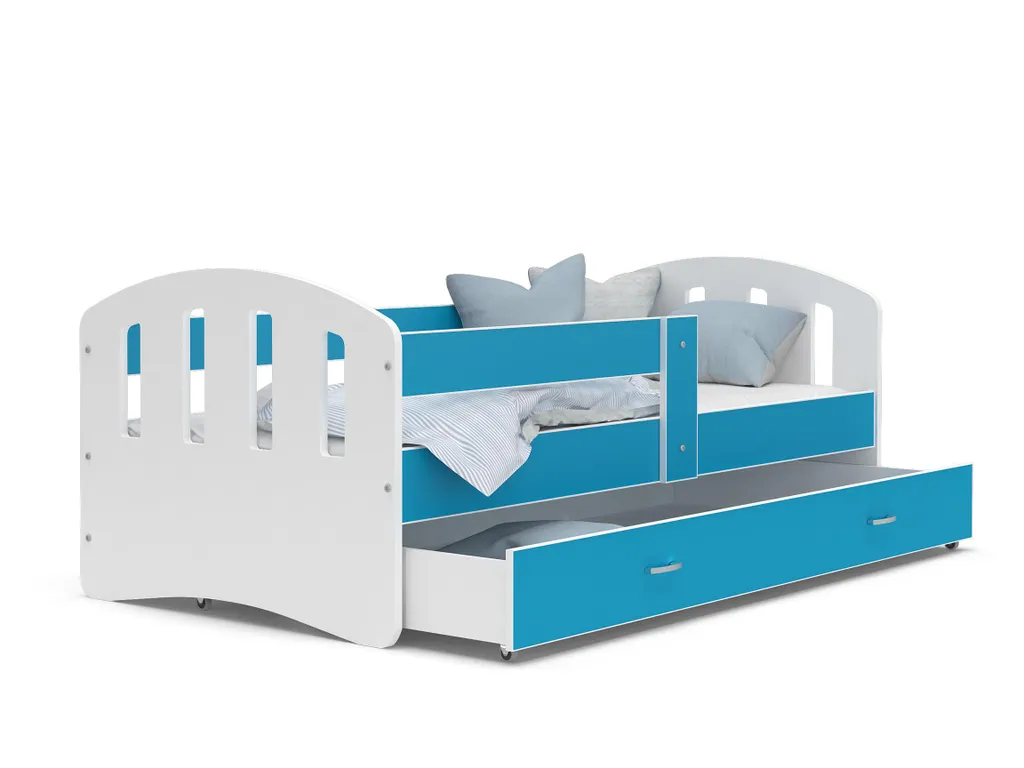Das Kinderbett ist mit einer geräumigen Schublade auf Rollen für den zusätzlichen Stauraum ausgestattet, die das Kind dabei unterstützt, das eigene Zimmer in Ordnung zu halten. Mit den zwei praktischen Griffen lässt sich die Schublade mit Leichtigkeit auch von Kindern herausziehen.
