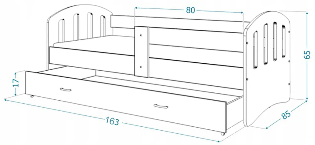 - Abmessungen Bett: 85 x 163 x 65 cm