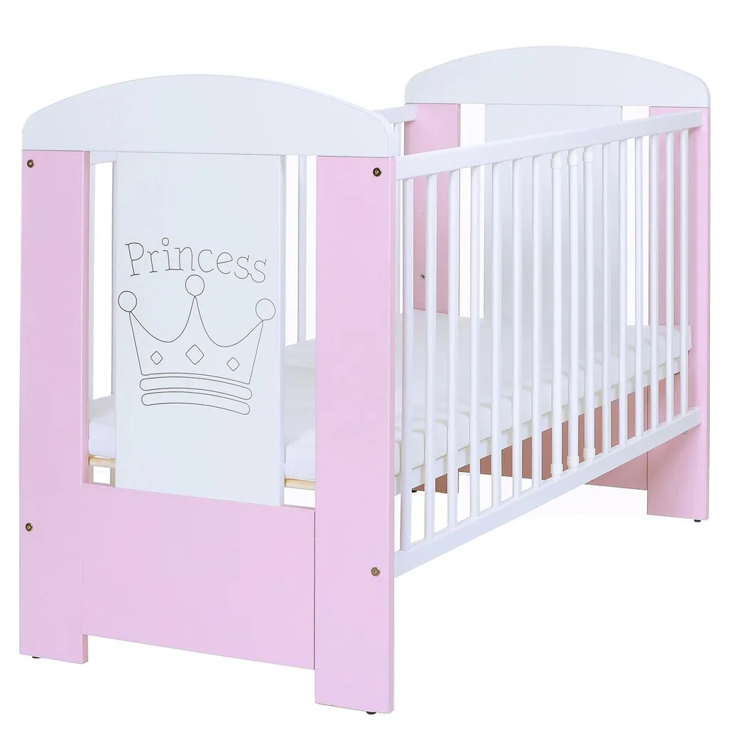 Das Kinderbett Princess 120×60 aus Kiefernholz mit Schaumstoffmatratze für Mädchen bereits ab Geburt mit einer schönen ins Holz eingravierten Krone zusammen mit der „Princess“ Gravur als Schriftzug in einem der beiden Bett Frontelemente. Die Konstruktion und das verwendete Holz verleihen dem Bett eine sichere Stabilität und sorgen für einen langen Produktlebenszyklus. Eine Schaumstoffmatratze mit den Abmessungen 120x60x5 ist im Lieferumfang enthalten. Eine Wickelunterlage im Design „Princess“ passend zu der Kommode können Sie bei uns auch erwerben. Siehe andere Artikel von LCP Kids.