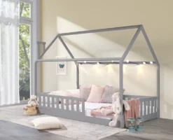 Hausbett »Kinderbett ROSI PLUS 120×200 Grau Kiefer« (Einzelbett Mit Lattenrost Und Abnehmbarem Rausfallschutz)