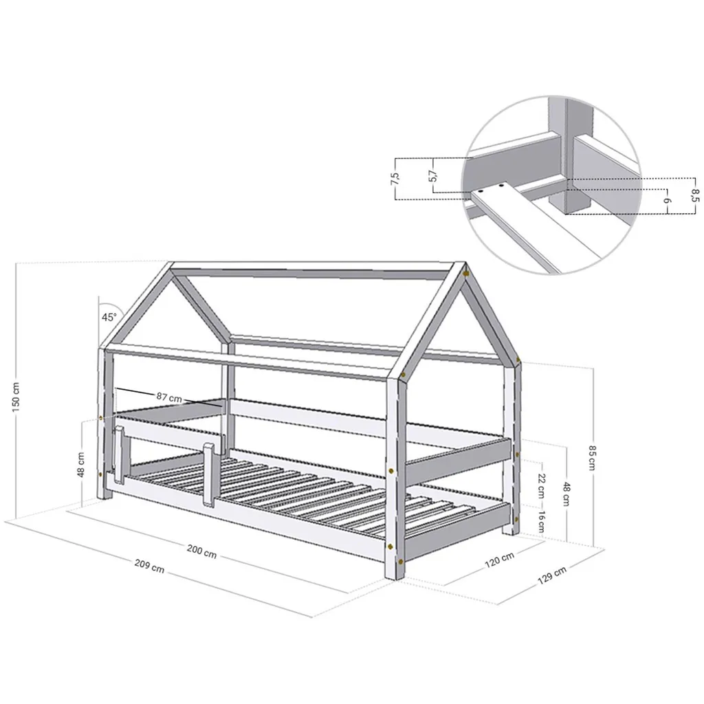 Mit dem Hausbett Tery mit dem Rausfallschutz wird es jedes Kind schaffen. Ihr Kind wird seine vier Ecken zu undurchdringbarem Tipi machen und von dort aus sich jeder Gefahr wehren, die auf es zukommt.