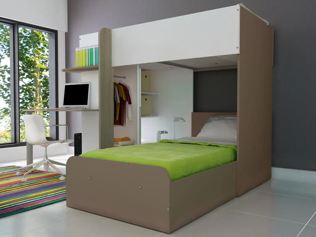 - Funktion: Inkl. Schreibtisch, Schrank mit 1 Kleiderstange & 1 Regal, Nachttisch, Regal & Bettkasten