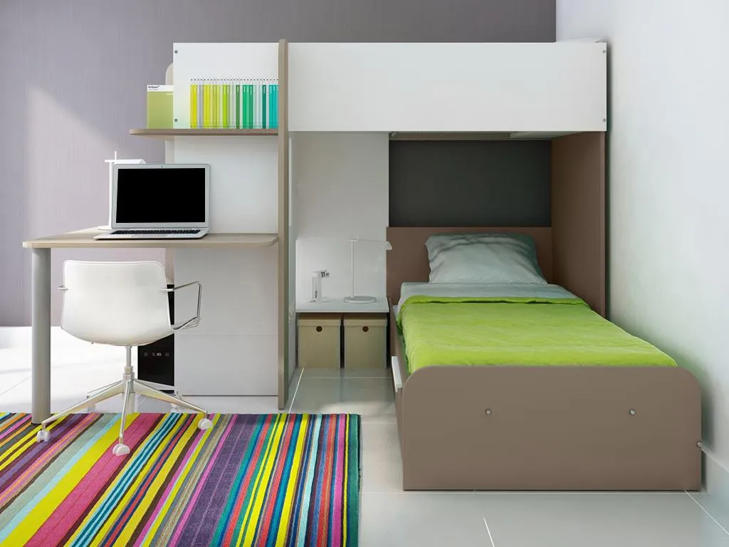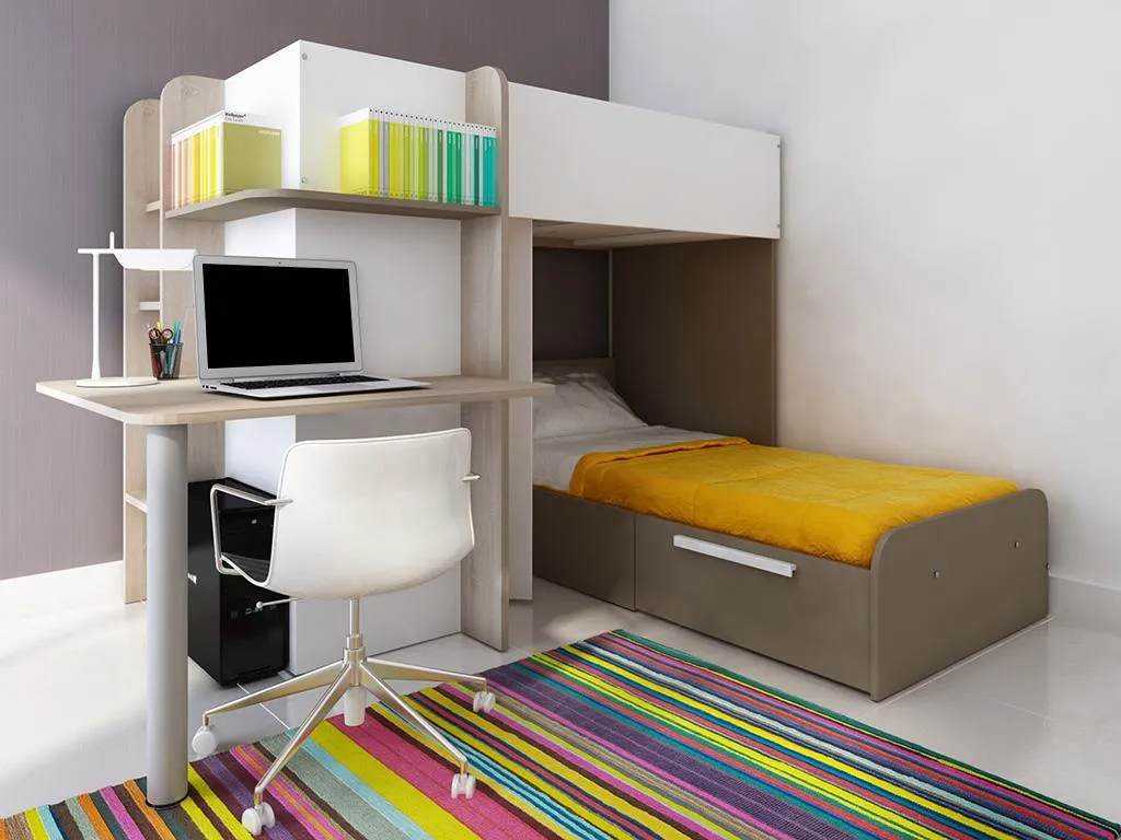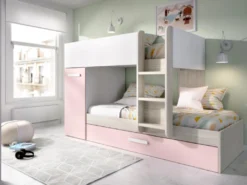 Das Hochbett Samuel besteht aus 2 Liegeflächen à 90×190 cm und schafft durch seine zahlreichen Stauraummöglichkeiten viel Platz in Ihrem Kinderzimmer. Das Etagenbett kann beidseitig aufgebaut werden, wobei die Leiter sich immer an der Schreibtischseite befindet.