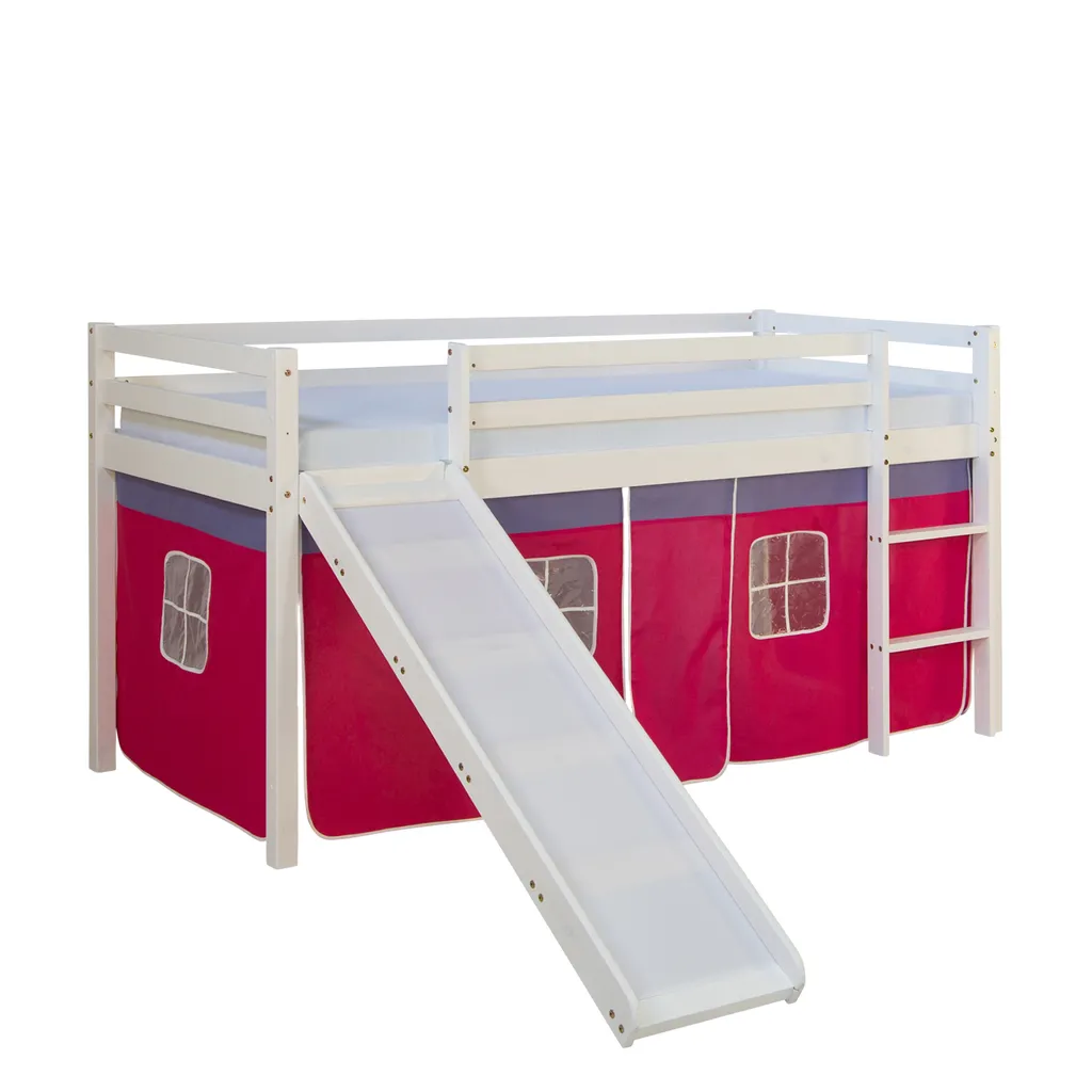 - Bettgestell mit Leiter,Rutsche,1 x Vorhang