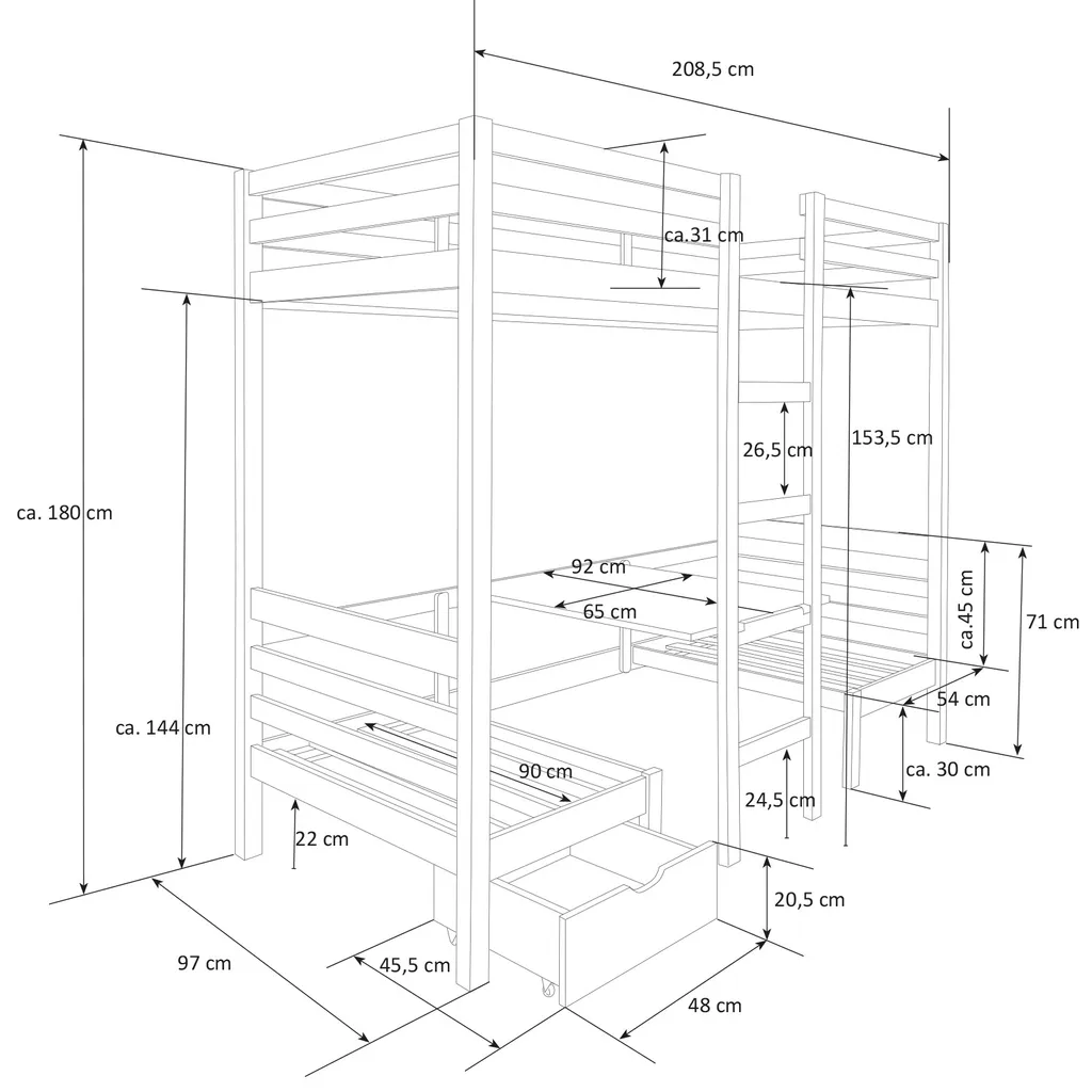 - Hochbett mit Schreibtisch und Sitzfunktion