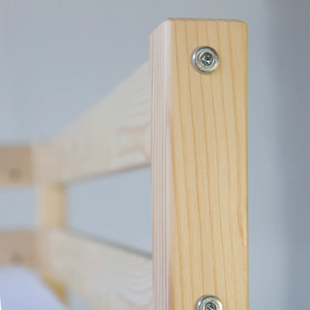 Mit einer Liegefläche von 90 x 200 cm besteht unter dem stabilen Bett mit einer Höhe von 138,5 cm viel Platz für eine Spiel- oder Schreibecke. Nach einem aufregenden Tag kann Ihr Kind in diesem Hochbett erholt und ruhig schlafen.