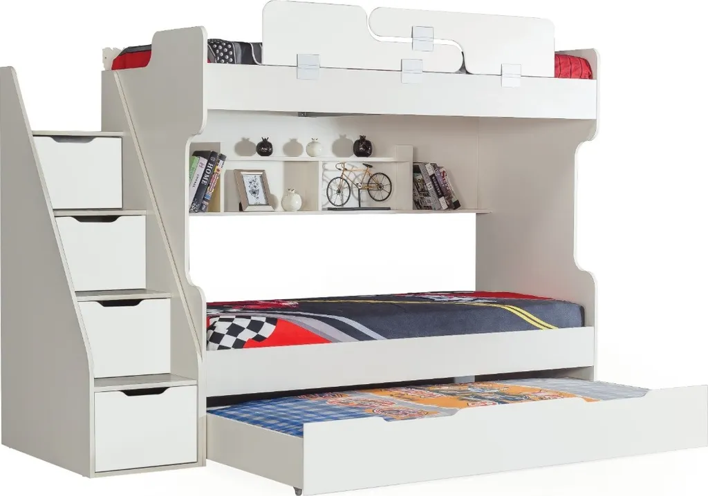 1x Etagenbett HOYKA mit Treppen und 3 Liegeflächen