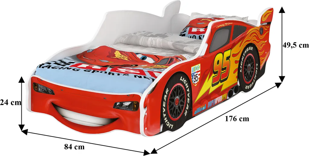 Die Kinderbetten von iGlobal sind auf die Bedürfnisse von Kindern perfekt abgestimmt. Sie sind mehr als nur eine einfache Schlafstätte. Unserer Betten überzeugen mit kinderfreundlichem Design, hochwertigen Materialien und sorgfältiger Verarbeitung. Das Bettmodell Lightning McQueen Autobett wurde aus Kiefernholz hergestellt und verfügt über einen soliden Bettrahmen sowie einen bequemen und robusten Flex-Lattenrost aus Kiefernholz. Der Lattenrost befindet sich 19 cm über dem Fußboden.