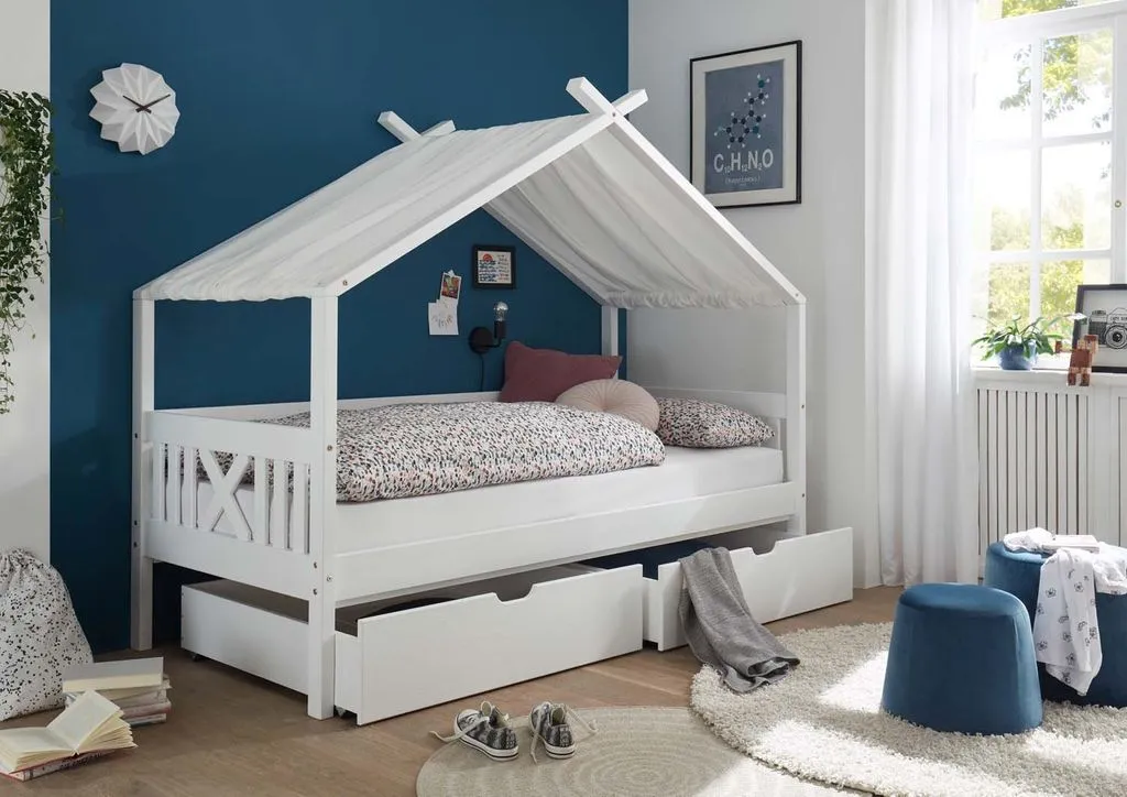 – Matratze, Vorhang und sonstige Deko nicht im LieferumfangAbmessungen:209 x 98 x 170 cm (BxTxH)Pflegehinweis:Keine lösungsmittelhaltige oder scheuernden Putzmittel verwenden