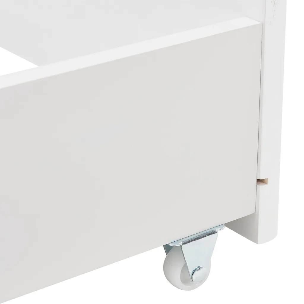 Wohin mit dem ganzen Spielzeug? Nutzen Sie dafür die 2 geräumigen Schubladen unter dem Kinderhausbett. Die jeweils 78x84x14 cm große Schublade bietet viel Platz für mehr Ordnung im Kinderzimmer. Durch die Rollen lassen sich die Bettkästen leicht ein- und ausfahren.