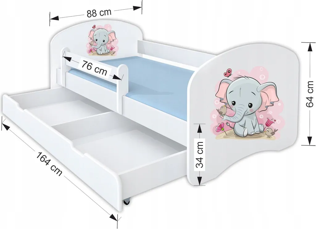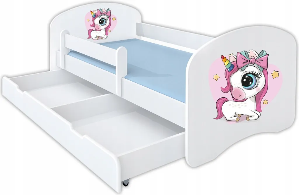 Das Bett wird mit einer bequemen, doppelseitigen Kindermatratze aus hochwertigem Polyurethanschaum mit erhöhter Haltbarkeit geliefert. Diese Art von Schaumstoff verformt sich nicht und ist in ihrer Härte speziell auf das Gewicht des Kindes abgestimmt. Der Bezug ist mit einem Reißverschluss ausgestattet, der es ermöglicht, ihn bei Bedarf abzunehmen und zu waschen, wodurch ein hohes Maß an Hygiene gewahrt wird.