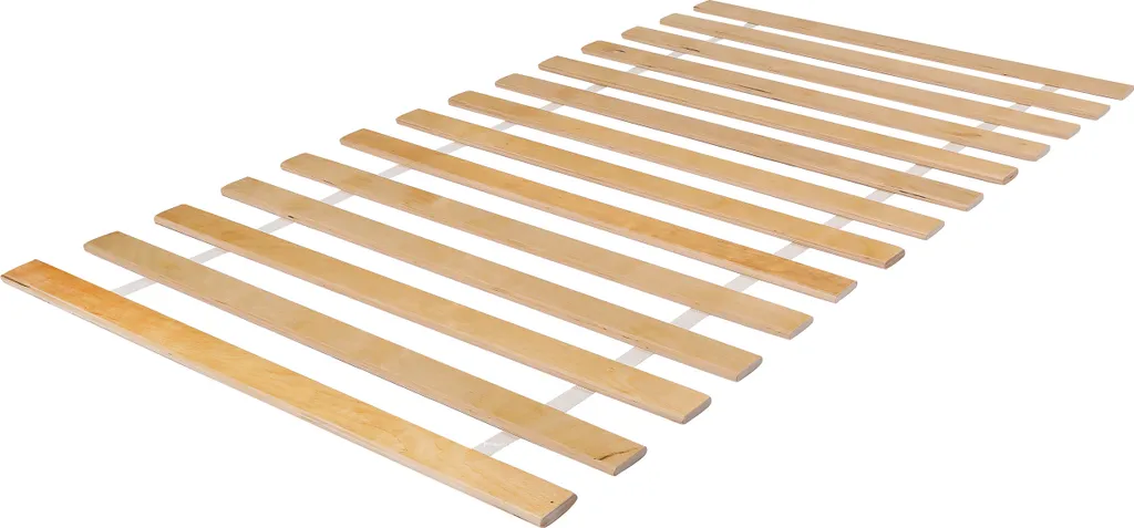 - ist mit einem Matratzenrahmen ausgestattet, der aus elastischen Latten besteht, die mit einem Band verbunden sind