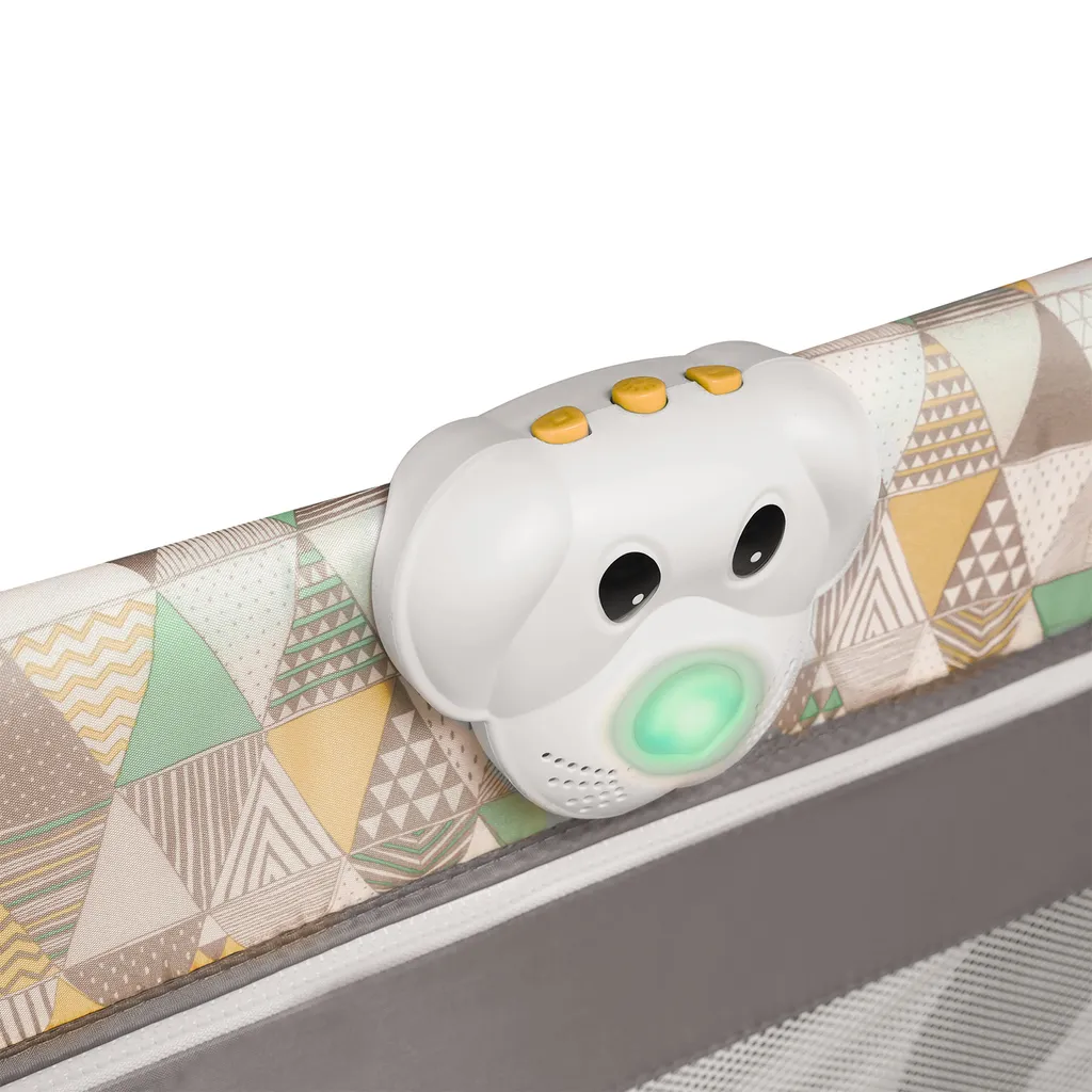 Das Babybett von lionelo überzeugt durch eine Vielzahl an Accessoires. Hier sehen Sie z.B. die Musikbox im Hunde-Design, bei der sogar die Nase blau leuchtet, wenn das Kind daraufdrückt.