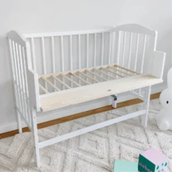Das Beistellbett Theo wurde mit einer außergewöhnlich komfortablen Matratze mit den Maßen 50 x 87 cm und der Höhe von 4 cm ausgestattet. Die Konstruktion besteht aus drei Lagen und ist sehr bequem für das schlafende Kind: