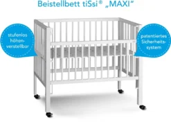 Durch die Einstellmöglichkeiten von Fußlänge, Höhe sowie Neigung passt sich das Kinderbett an und kann somit direkt neben jedem Bett plaziert werden.