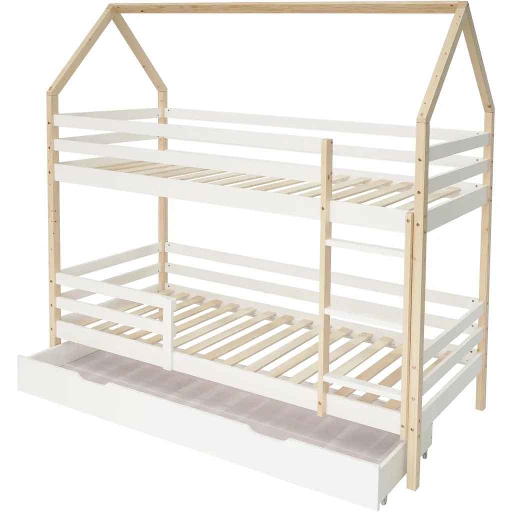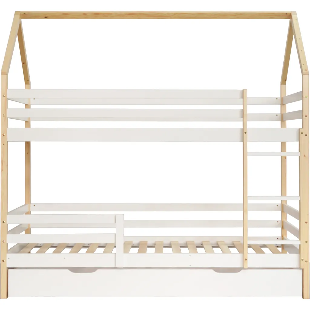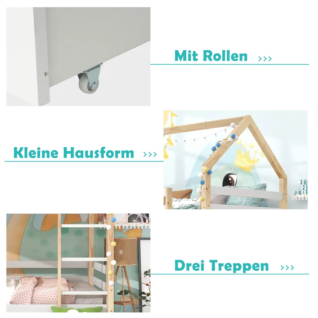 ????【Elegantes Design】Die Form des niedlichen kleinen Hauses kann Kindern ein warmes Schlaferlebnis bescheren. Das Design des Etagenbettes stellt Familien mit vielen Kindern zufrieden. Die Kombination aus Holzfarbe und Weiß kann das Kinderzimmer wärmer machen.