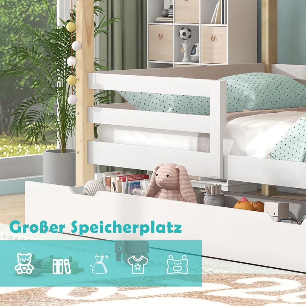 ????【Großer Stauraum】Das untere Bett ist mitübergroßen Schubladen zur Aufbewahrung ausgestattet, was für Eltern praktisch ist, um die Gegenstände ihrer Kinder aufzubewahren und eine komfortable und ordentliche Schlafumgebung für ihre Kinder zu schaffen.