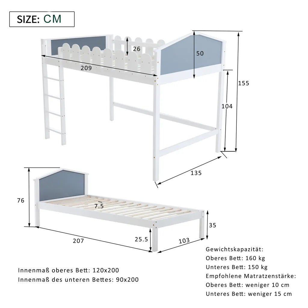 ????【Stilvolles und schlichtes Erscheinungsbild】Die klassischen Farben und das schlichte Aussehen heben Ihre Wohnkultur hervor. Oberbett 120 x 200 cm und Unterbett 90 x 200 cm sind für Kinder und Erwachsene geeignet. Kann in Schlafzimmern, Gästezimmern, Schlafsälen usw. platziert werden. Dieses schöne Doppel-Hochbett wird bei Jungen und Mädchen der Hit sein.