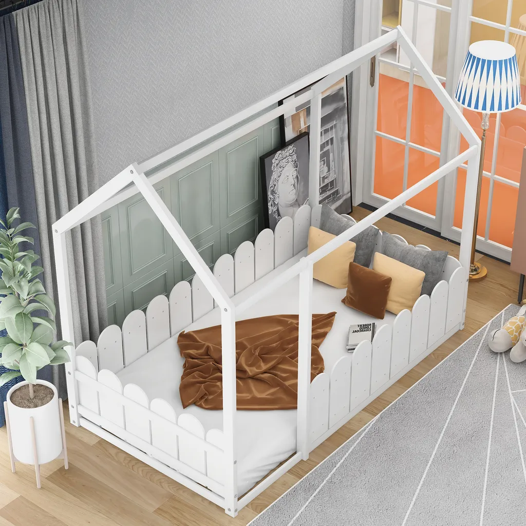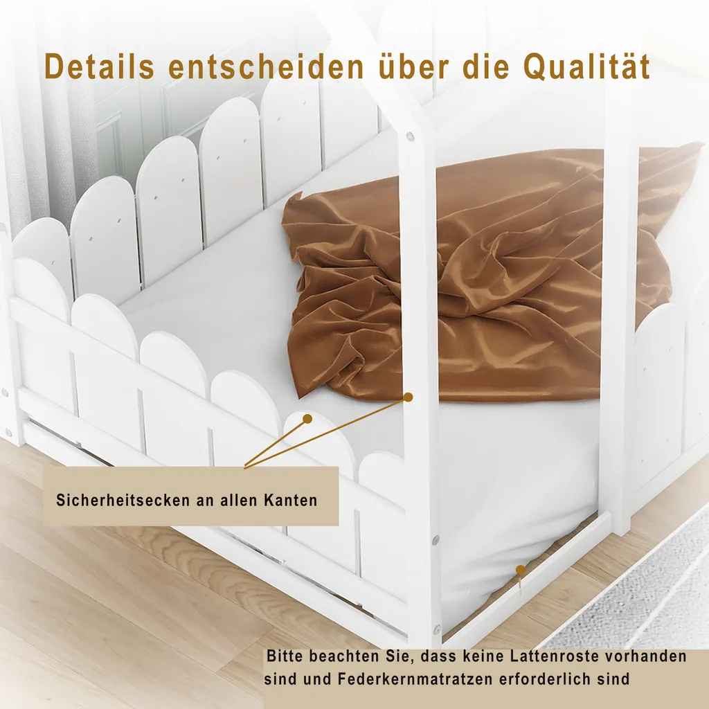????【Bodenbett für Kinder】Niedrig am Boden – ideal als erstes „großes Bett“ für Kleinkinder, Dieses Hausbodenbett ist sicher und komfortabel. Sie müssen sich keine Sorgen machen, dass Ihr Kind das Bett ausrollt und sich verletzt.