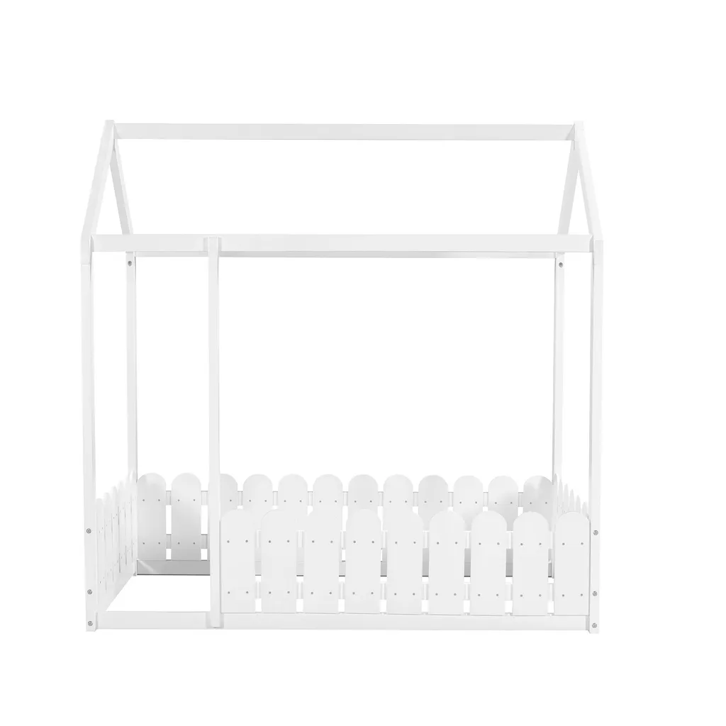 ????【Kinderhausbett】 Mit Dach und Zaun schafft dieses einzigartige Bett einen lustigen und bezaubernden Raum, der nicht nur als bequemer Schlafbereich dient, sondern auch als Platz für Ihre Kinder zum Spielen und Spaß haben.