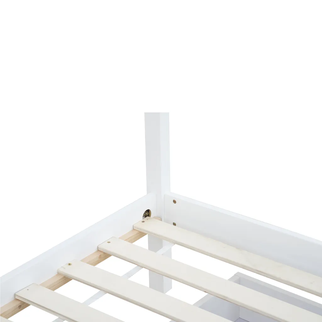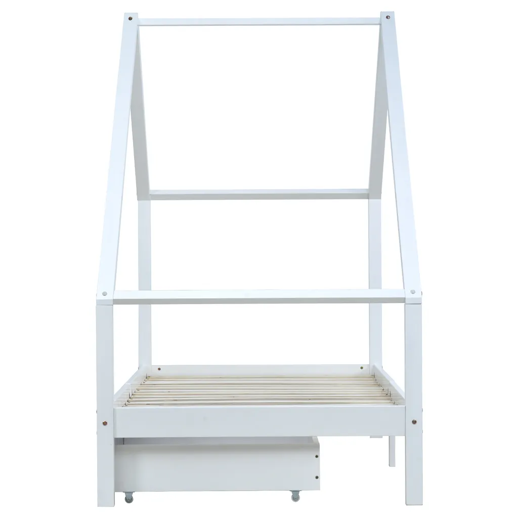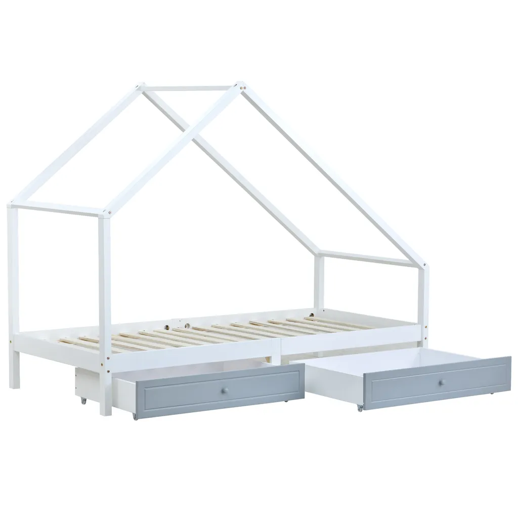 Dieses supercoole Heimbett ist perfekt für Kinder. Sie können den perfekten Raum im Schlafzimmer schaffen, um der Fantasie Ihres Kindes freien Lauf zu lassen. Dank seines vielseitigen und schlichten Gestells können Sie es ganz nach der Persönlichkeit Ihres Kindes dekorieren, zum Beispiel mit drapierten Stoffen, hängenden Laternen oder Spielzeug. Dieses Holzbett ist auch perfekt für die Leseecke oder das Spielzimmer Ihres Kindes. Dieser Bettrahmen aus massivem Kiefernholz ist sehr stark und langlebig. Zwei große Schubladen zur Aufbewahrung erleichtern die Organisation Ihres Zimmers, bitte beachten Sie: Die Lieferung umfasst nur das Bettgestell, zwei Schubladen, Montageanleitung und Werkzeug, die Matratze ist nicht enthalten.