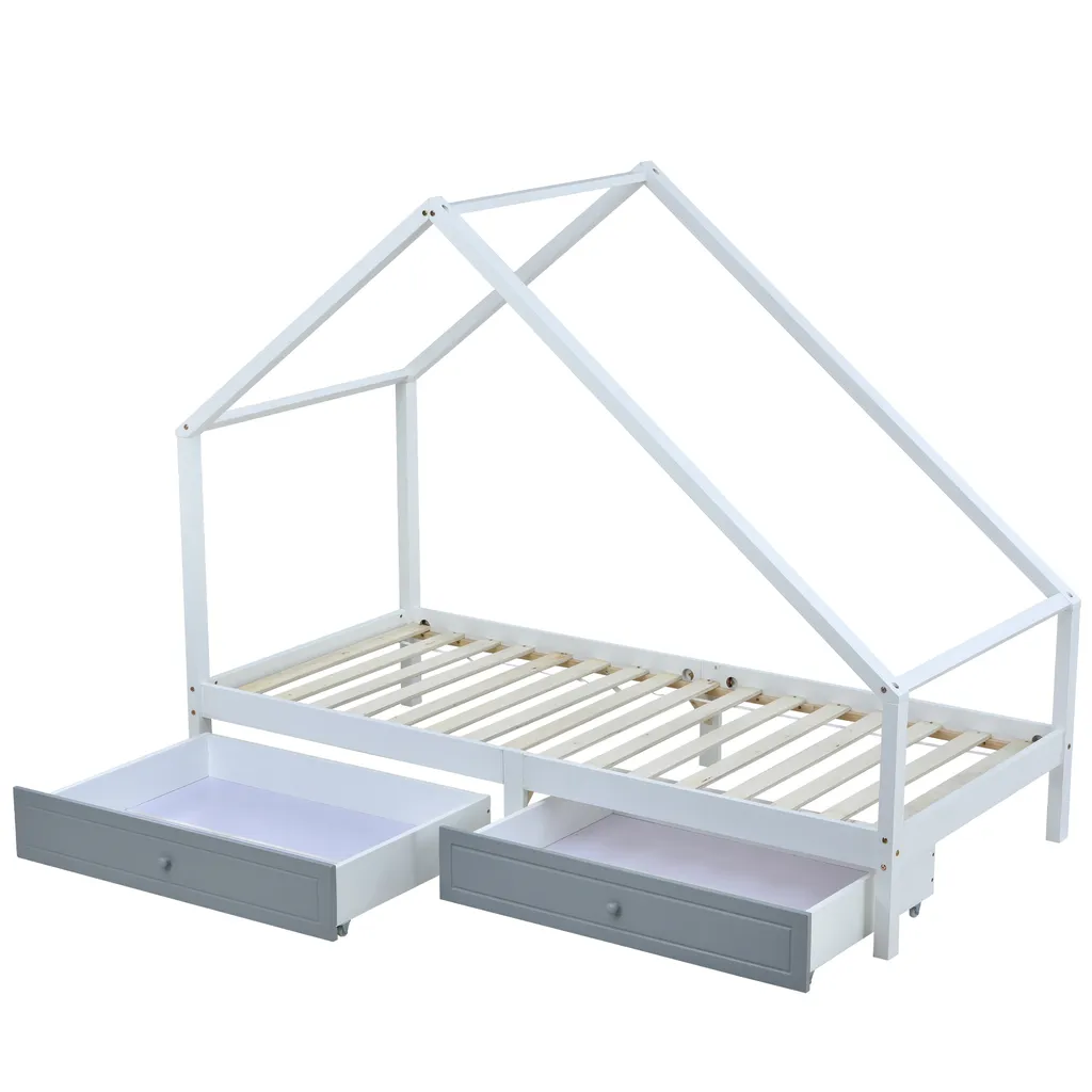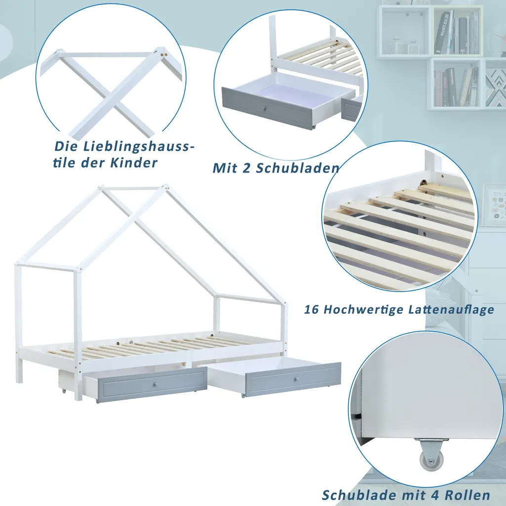 - 【Kinderbett mit Schrägdach-Design】Das einzigartige Schrägdach-Design sowie die klassische Farbabstimmung in Weiß und Hellgrau sind klassisch und liberal und lassen sich perfekt mit jedem Ihrer Einrichtungsstile kombinieren