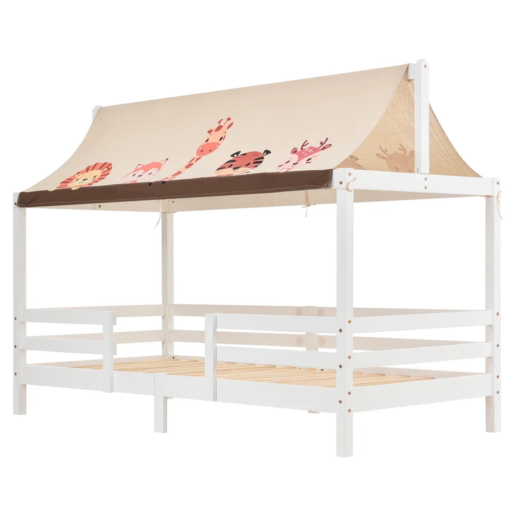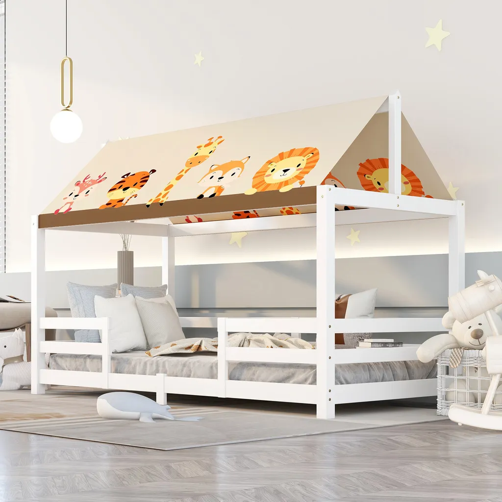 Das Zeltdach ist im Dschungelthema und mit den Lieblingsspieltieren der Kinder bedruckt: Löwe, Giraffe, Tiger, Elch und Fuchs. Perfekt für den Bau eines Kinder-Themenzimmers. Das Material des Zeltdaches ist natürlich und unbedenklich und kann von Kindern gefahrlos verwendet werden. Die Atmungsaktivität ist besser als die des Oxford-Stoffs auf dem Markt und besser geeignet für die Schlafumgebung, die von Kindern benötigt wird.