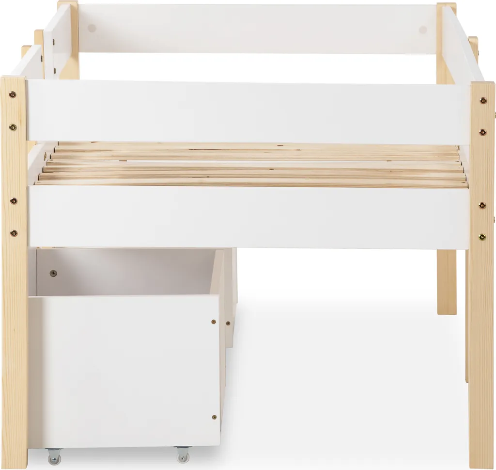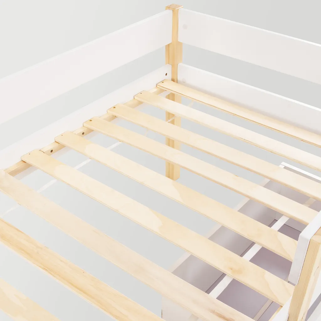 - ????EINFACHE UND SCHNELLE MONTAGE: Dank des im Lieferumfang enthaltenen Roll-Lattenrostes benötigen Sie zur Ausstattung dieser erhöhten Liegefläche lediglich noch eine passende Kindermatratze und die Schlafstätte ist bereitet. Mit Hilfe der im Lieferumfang enthaltenen, bebilderten Montageanleitung ist der Aufbau denkbar einfach möglich.