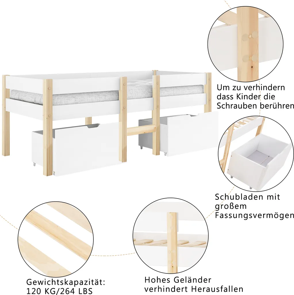 - ????HOCHWERTIG: Dieses hochwertige Kinderbett ist aus Kiefern-Vollholz gefertigt und steht für Qualität, Stabilität und Sicherheit für Ihr Kind. Von Eltern für Eltern konzipiert und getestet.