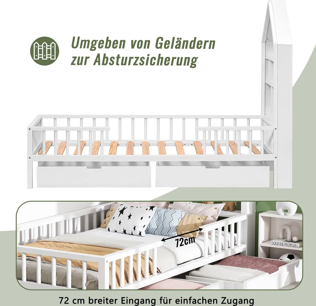 ????【Sicherheitsdesigns】Als Kinderbett ist das Design dieses Möbels auf Sicherheit auch sehr sorgfältig und nützlich. Dieses Kinderbett ist mit einem Begrenzungszaun ausgestattet, um zu verhindern, dass Kinder beim Schlafen herunterfallen. Durch den 72 cm breiten Eingang können Kinder ein- und ausgehen und Eltern nachts bei ihren Kindern bleiben.