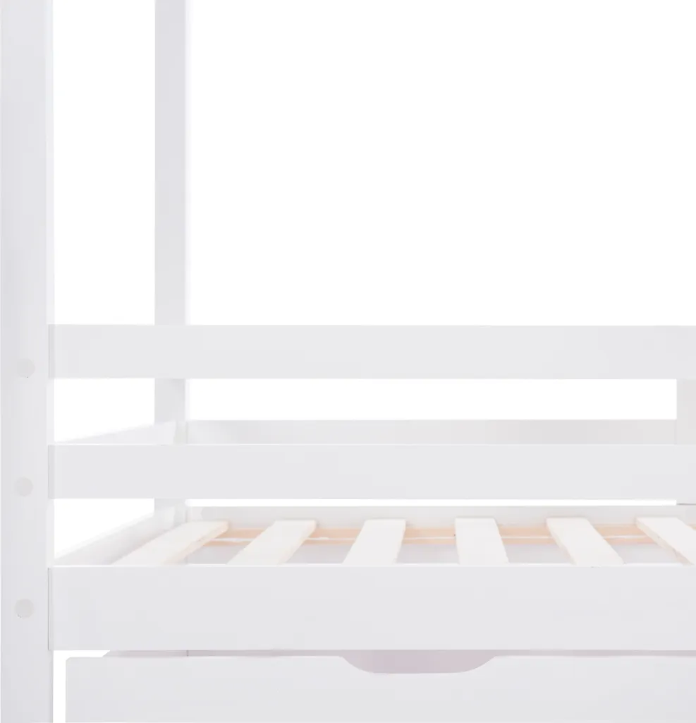 ????【Praktikabilität und Kreativität kombinieren】Das Bett hat eine allgemeine Dachform,die den Bewegungsraum erweitert.Die einzigartige Konstruktion ermöglicht es Ihnen, dem Schlafzimmer Ihres Kindes ein fantasievolles Gefühl der Kreativität zu verleihen. Sie können auch Zelte aufstellen, in denen Ihre Kinder mit ihren Freunden oder Geschwistern Verstecken spielen und sicher und fest schlafen können.