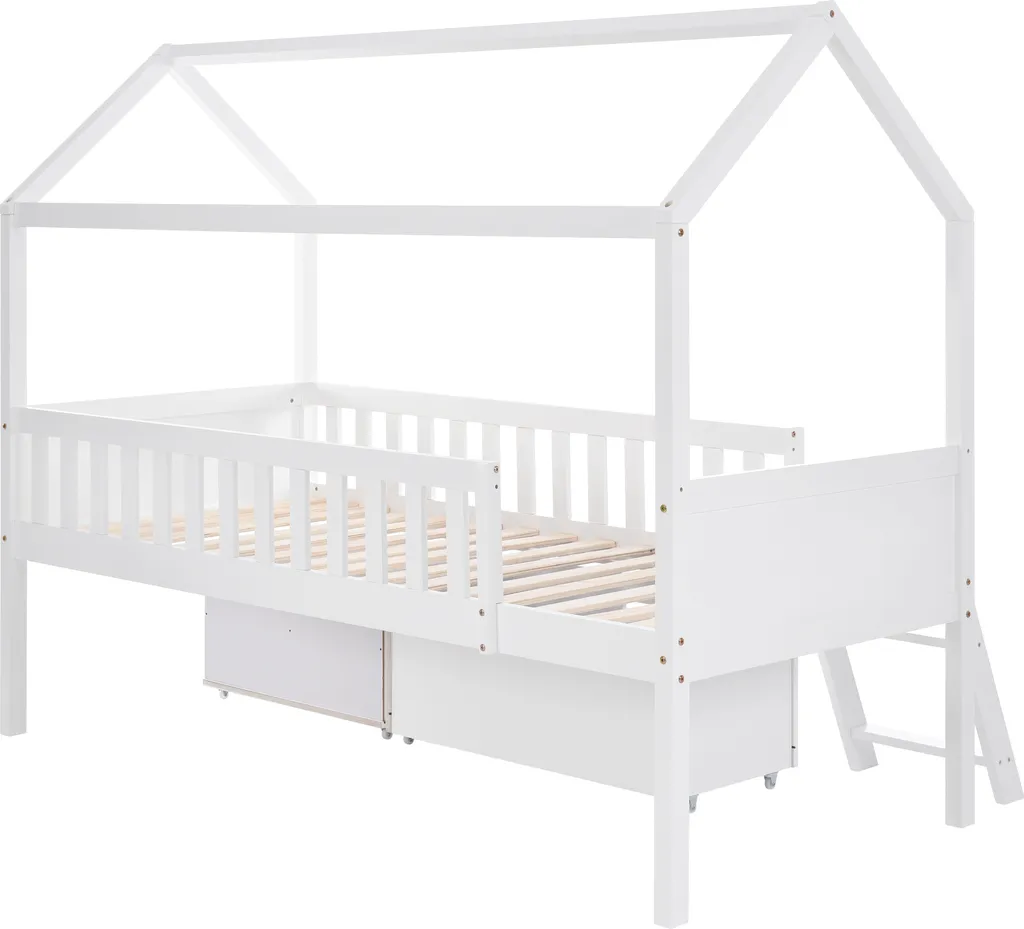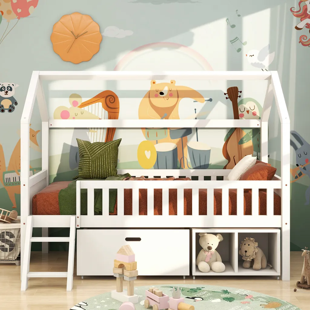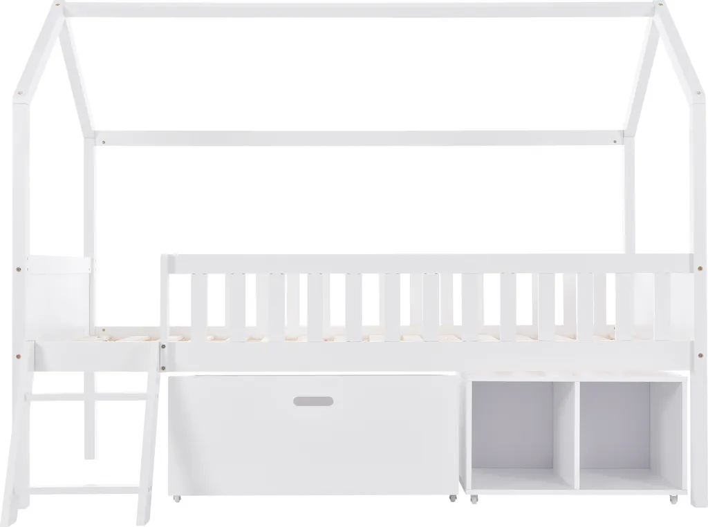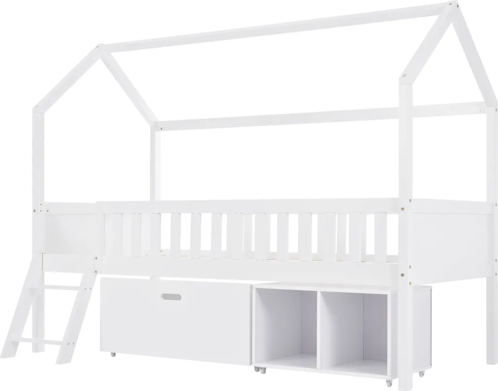Dieses Kinderbett mit kleiner Treppe und Stauraum ist einfach und macht Spaß,Das Design der Treppe befriedigt den Spaß am Kinderklettern,Unter dem Bett befindet sich eine große Schublade und ein Schrank mit Fächern zur einfachen Aufbewahrung von Kindersachen,Neben Funktionalität und Spaß steht bei dem Produkt auch die Benutzersicherheit im Vordergrund. Dieses Heimbett ist für Matratzen mit den Maßen 90 x 200 cm geeignet.