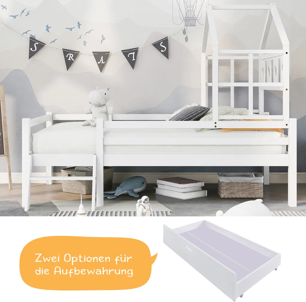 - Maximale Sicherheit: Dieses Bett ist wie gemacht für den turbulentem Alltag im Leben eines Kindes. Rausfallschutz und abgerundete Kanten lassen auch Eltern gut schlafen.Ein weiteres Highlight ist die vordere Umrandung des Bettes mit breitem Einstieg.
