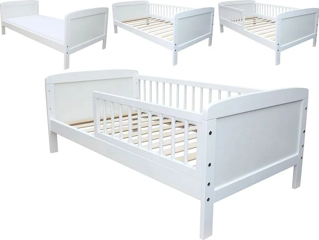 seitliche Gitter können abgenommen werden, dadurch entsteht ein normales Bett