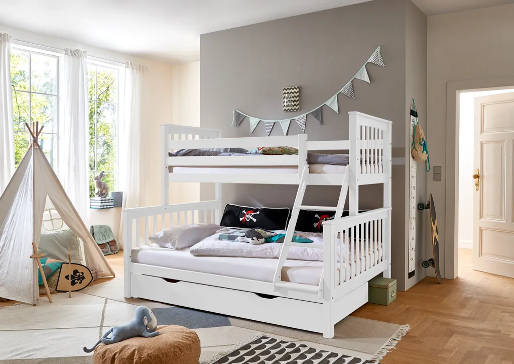RELITA – Etagenbett 90/140 X 200 Cm Liegefläche Kick, Mit Bettschublade, Buche Massiv Weiß Lackiert