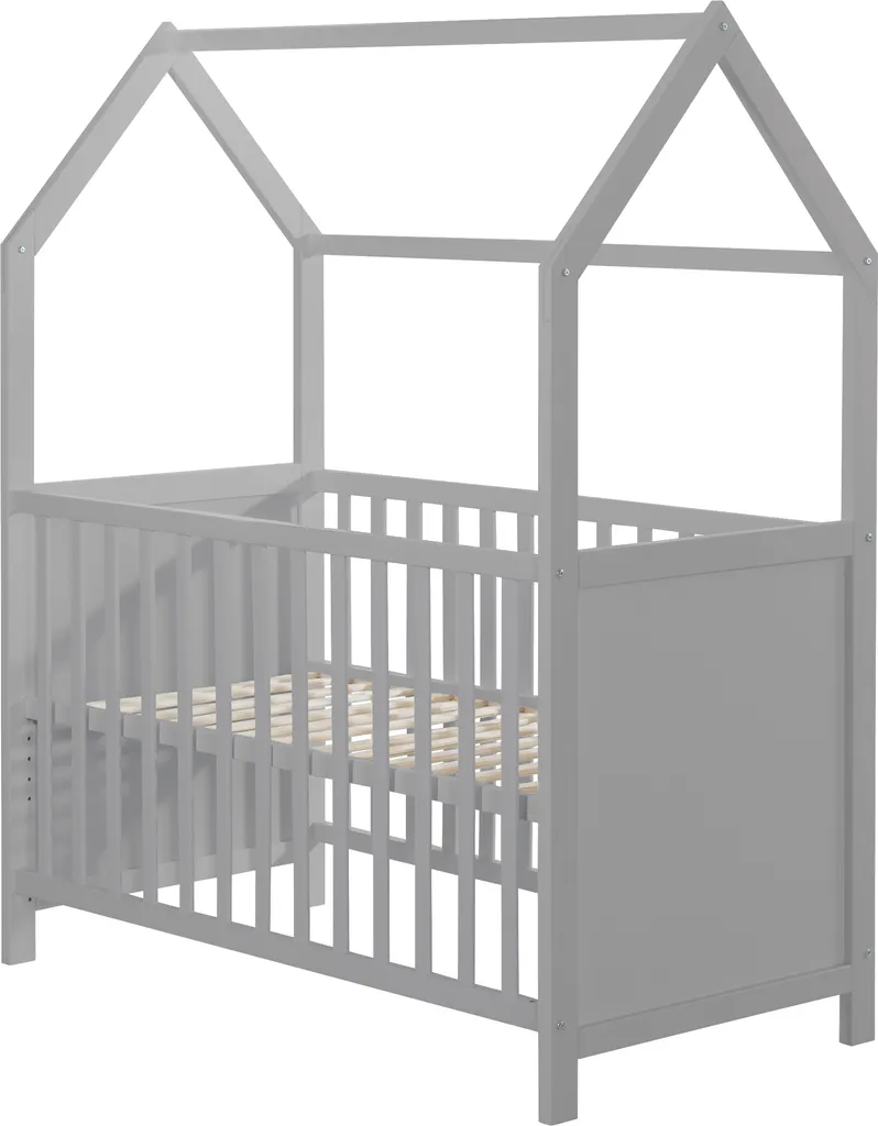 Roba Hausbett 60 X 120 Cm, Baby- & Beistellbett In Hausoptik, Taupe, 6-fach Verstellbar