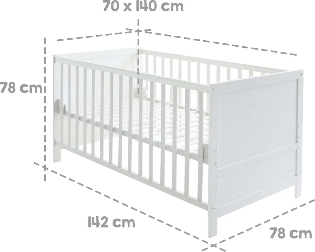 Roba Kombi-Kinderbett, 70 X 140 Cm, Weiß, 3-fach Verstellbar, Schlupfstäbe, Umbaubar Zum Juniorbett