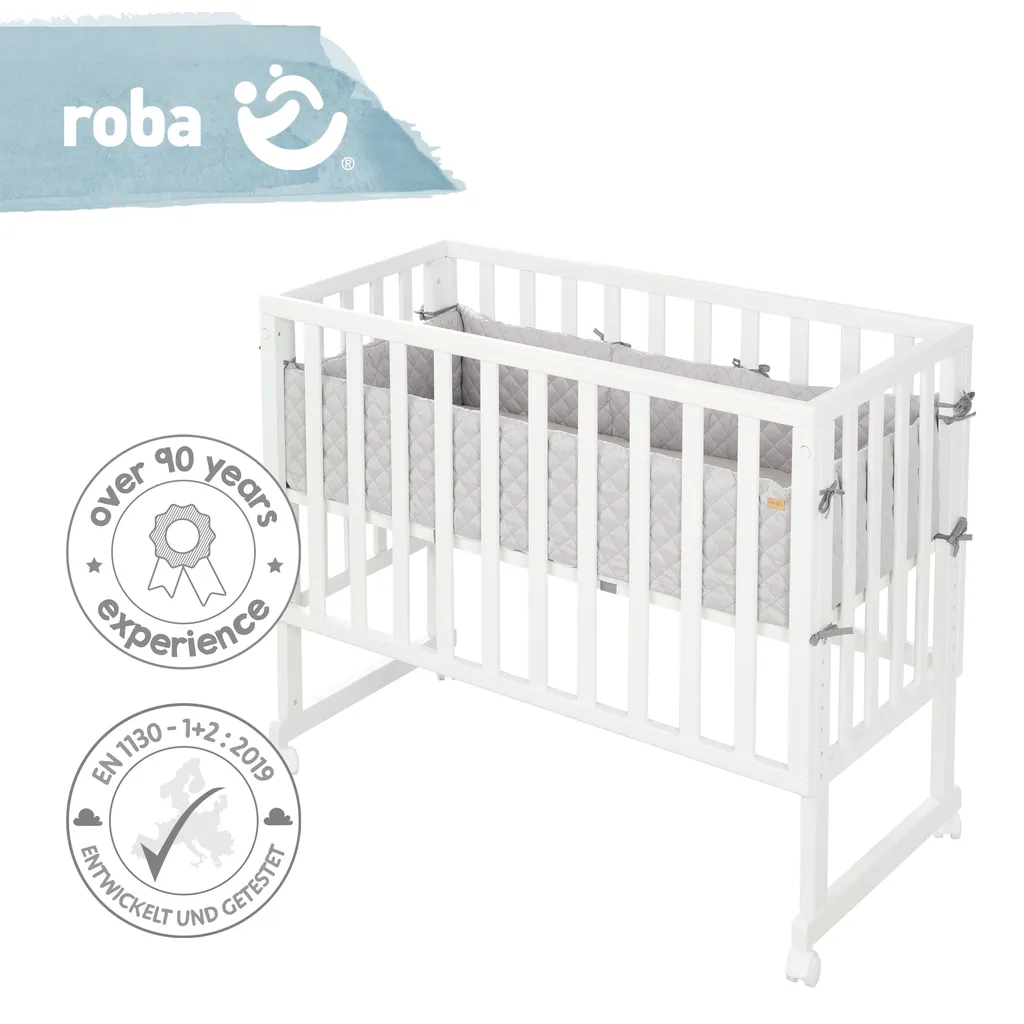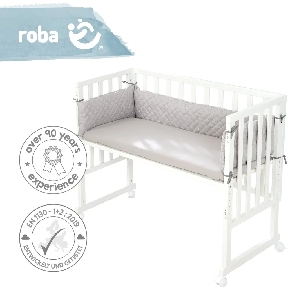 | Zusätzliche Varianten | roba Beistellbett 2in1, weiß, ‚roba Style‘, für alle Elternbetthöhen, inklusive Matratze, Nestchen und Barriere, roba Stuben- & Beistellbett 3in1 weiß, ‚roba Style‘, für alle Elternbetthöhen, inklusive Matratze, Nestchen und Barriere |