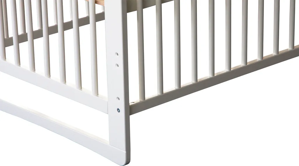 Ein wunderschönes Kinderbett aus weiß lackiertem Holz sorgt für sicheren Schlaf der Kleinsten!