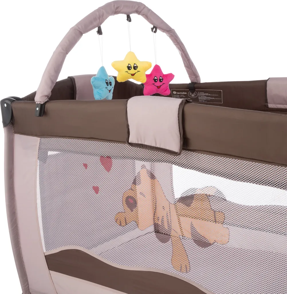 Das Kinderreisebett Hund bietet Deinem Kind angenehmen Schlafkomfort zu Hause und unterwegs. Es ist leicht aufzubauen und zu reinigen. Zudem kann durch Clipmechanismus eine Wickelauflage auf dem Reisebett angebracht werden. Eine Reissverschlussöffnung an der Stirnseite ermöglicht das Hineinklettern des Kindes. Zusätzlich sorgt eine Betteinlage für eine erhöhte Schlafposition. Das Kinderreisebett von tectake ist geeignet für Kinder bis zu einem Alter von 36 Monaten. Die Wickelauflage ist ausgelegt für Babys bis zu 12 Monaten und einem Gewicht von bis zu 11 kg.