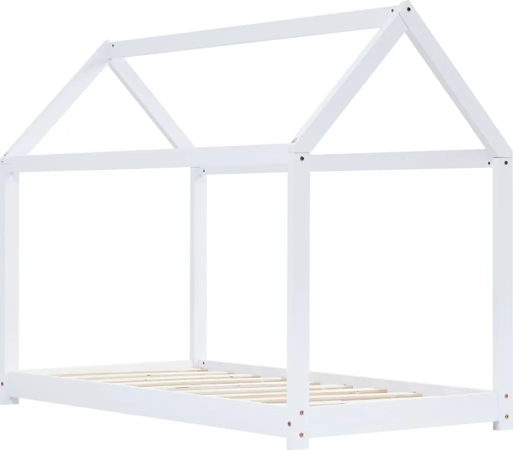 Das Bett ist mit seinem Rahmen im Baumhaus-Stil elegant gestaltet. Darauf können Sie Bettvorhänge aufhängen, um Ihrem Kind Privatsphäre zu bieten. Das Bett kann auch als Leseecke oder Spielhaus verwendet werden. Dieses Bettgestell aus massivem Kiefernholz ist äußerst robust und langlebig. Die robusten Latten bieten den nötigen Halt und sind sehr bequem. Dieser Bettrahmen ist für eine Matratze von 70 x 140 cm geeignet.