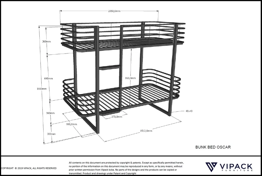 Vipack Oscar Metall Etagenbett 90 x 200 cm