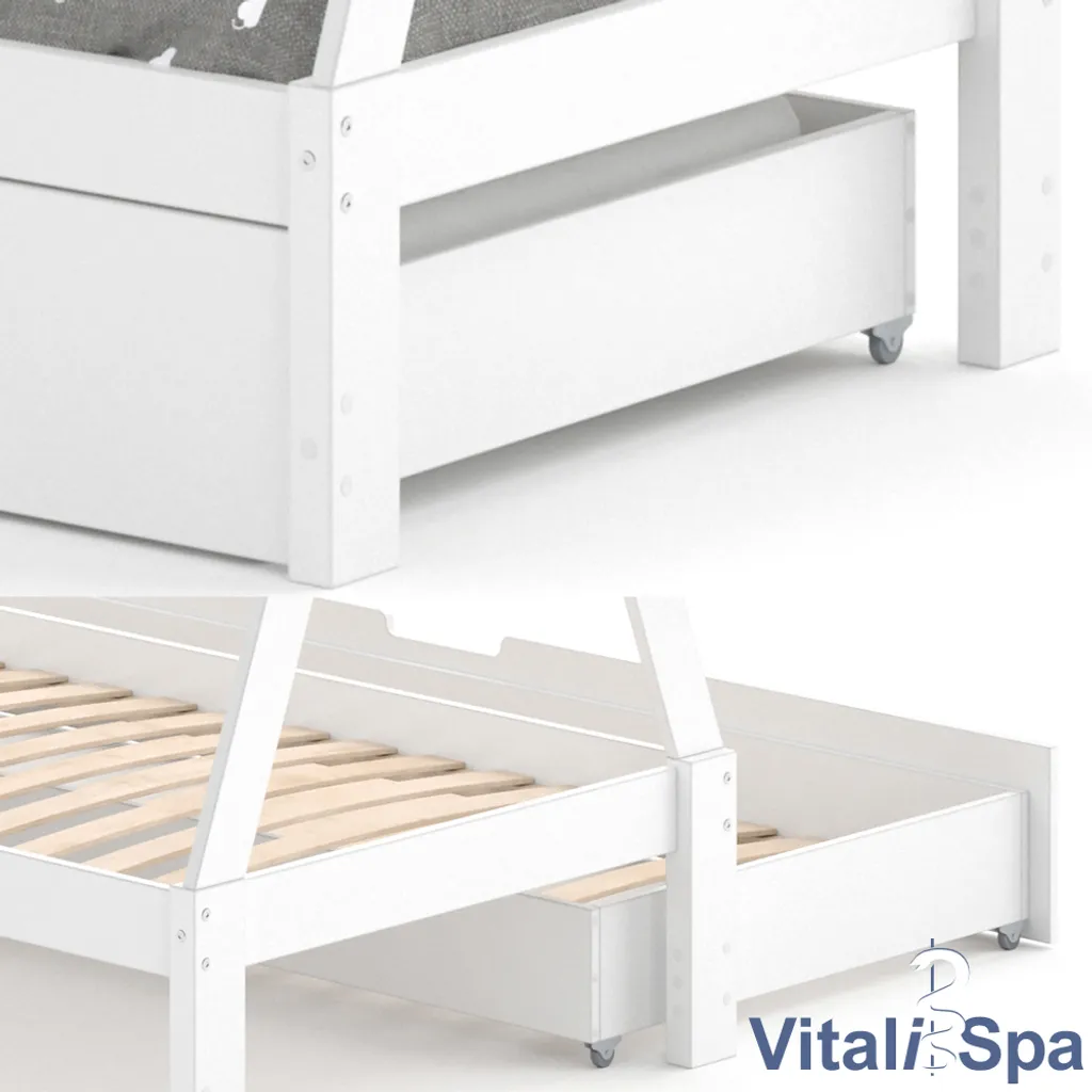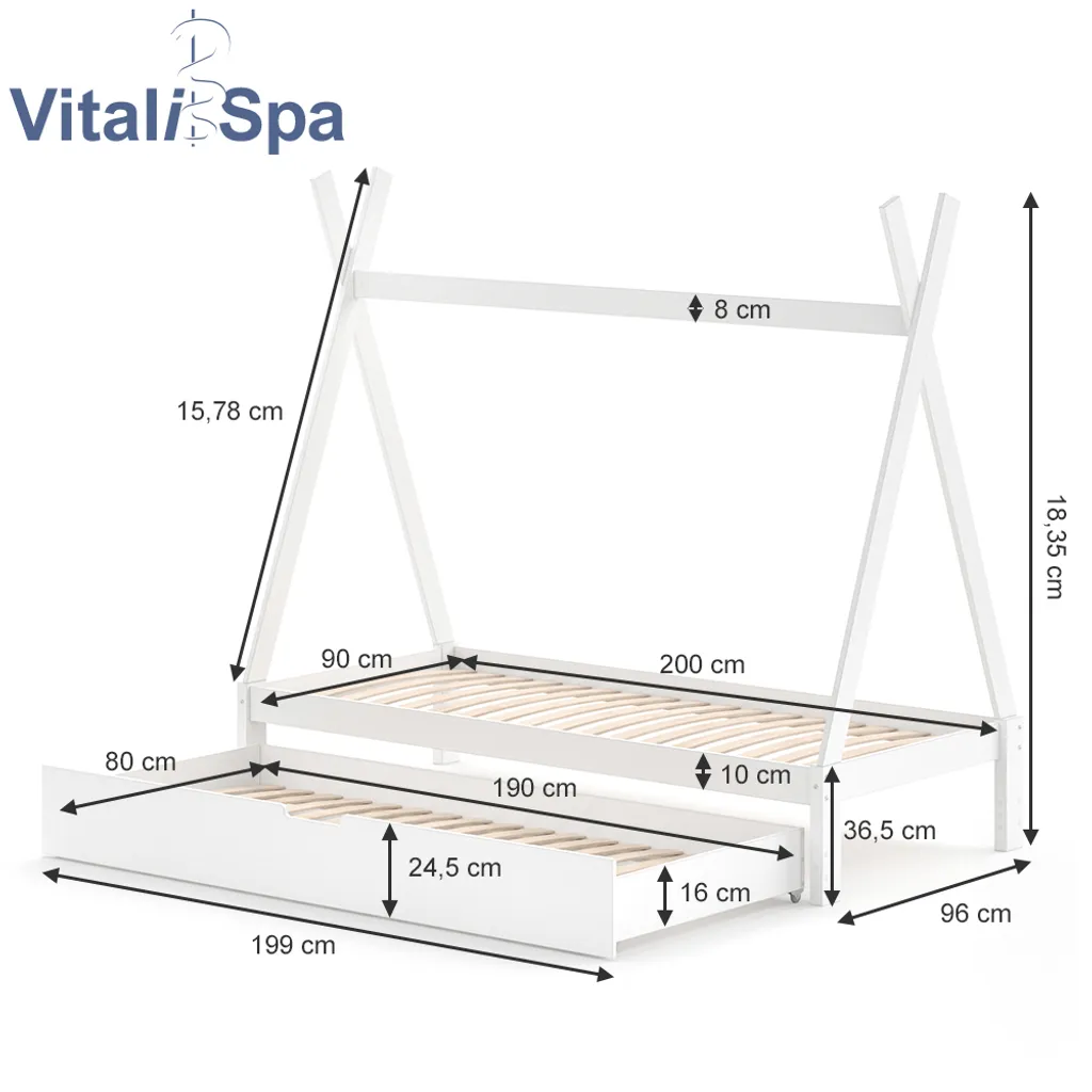 – Im Lieferumfang enthalten sind das Kinderbett Tipi inkl. Lattenrost, (optional eine Matratze, ein Bettkasten inkl. Lattenrost, zwei Schubladen) und eine bebilderte Montageanleitung.