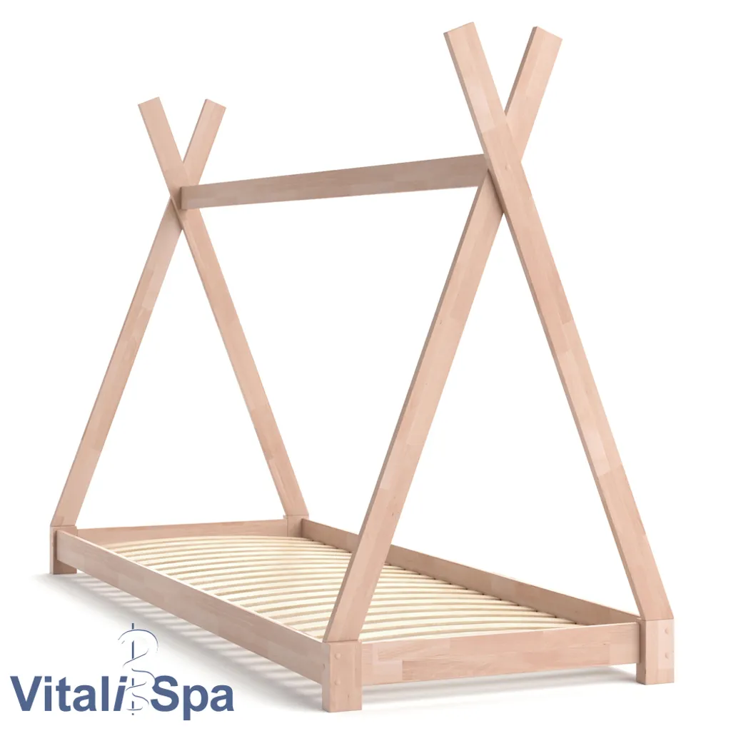 Der moderne skandinavische Stil dieses Naturholz-Möbelstücks passt in nahezu jede Kinderzimmereinrichtung. Ob Lichterkette, Wimpel, Betthimmel oder viele Kuschelkissen, die einzigartige Formgebung eröffnet viele Ideen und lädt zum Dekorieren ein.